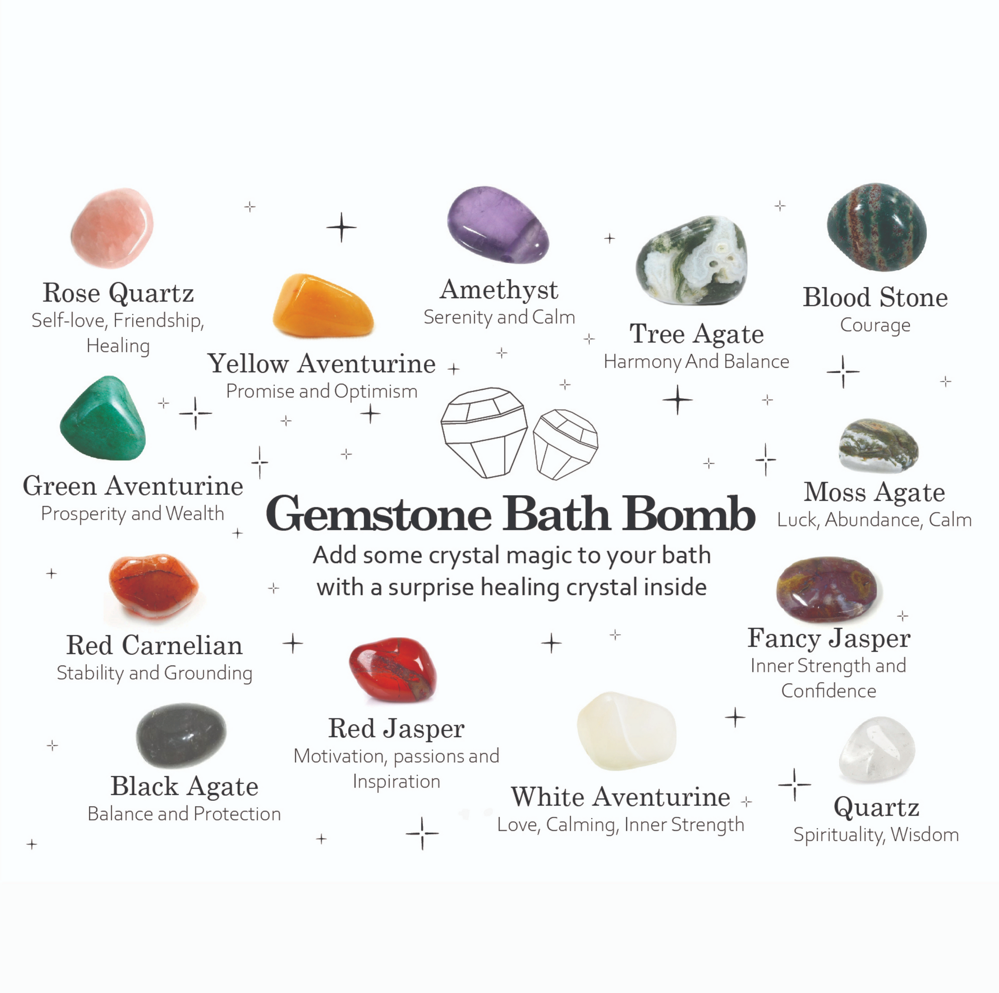 Hidden within each bath bomb is a one-of-a-kind gemstone that adds even more value to this already exceptional product.
