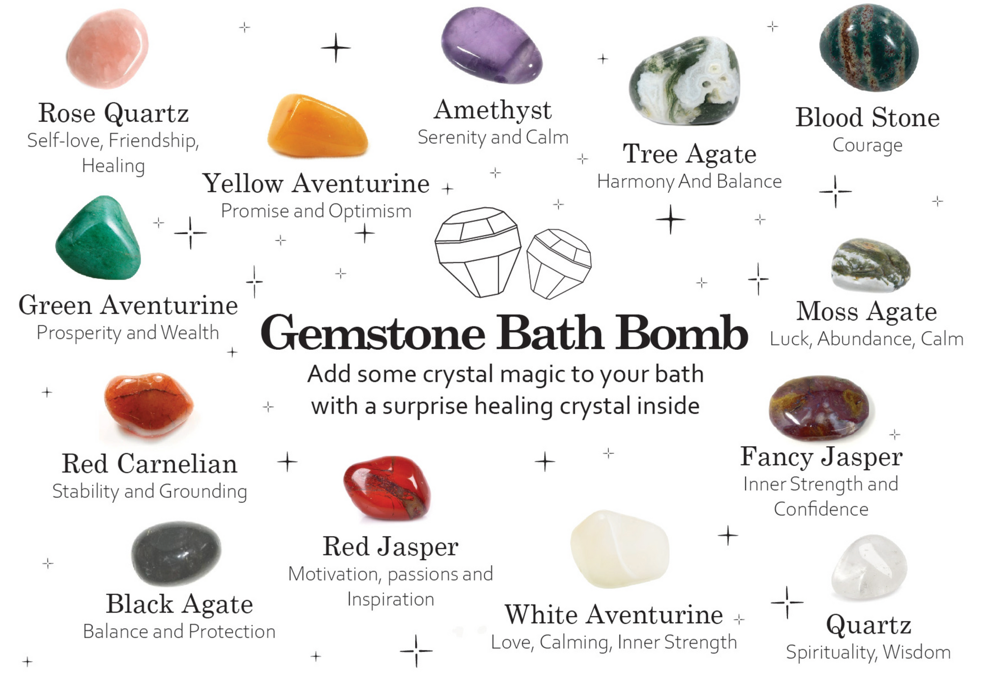 Our team thoughtfully selects from a variety of 13 different gemstones to ensure a special surprise in every soak.