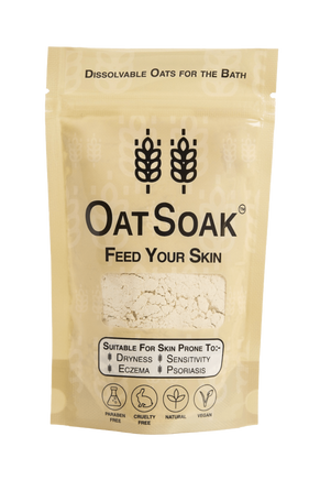 Oat grain, or Avena sativa, is ground into a fine powder to make OatSoak. It contains lipids, proteins, vitamins, minerals, and other substances that have been proved to improve skin, making it an emollient—a material that softens or soothes the skin.