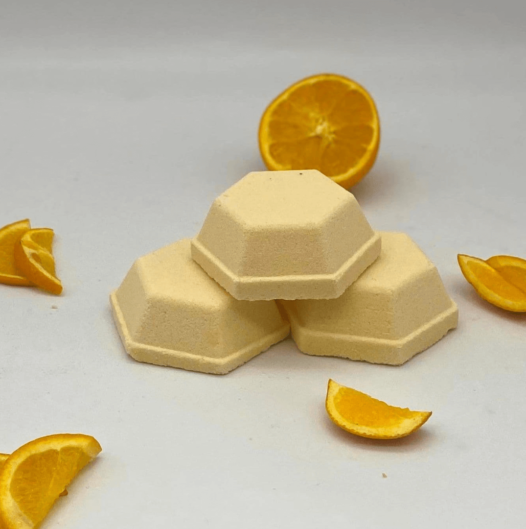 Pop a Happy Shower Steamer at the base of your shower, and when the water hits, it reacts and infuses the steam with the uplifting and calming aroma of Sweet Orange Essential Oil, known as the Happy Oil.