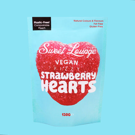 Fizzy Vegan Strawberry Hearts (Plastic-Free) 130g Share Bag
